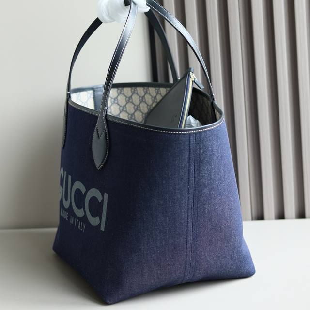 新品 Gucci Totissima系列糅合“Tote”一词与意大利语中表示最高级的词语“Issima”,彰显这款手袋的实用功能和隽永底色。这款中号托特包内附可拆卸手拿包。