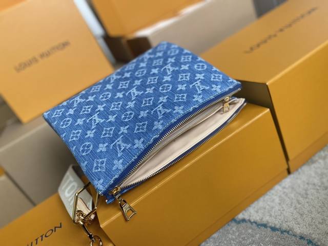 顶级原单 M24564 牛仔兰本款 Coussin 小号手袋以新季棉质丹宁吹袭清逸气息,依托漂白和砂洗工艺成就别致观感。搭配可拆卸铭纹粗链条和宽幅织物肩带,轻盈背携体验再度升级。