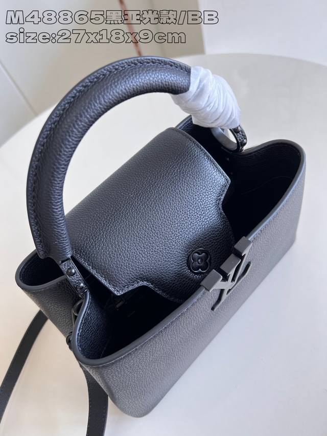 特级原厂 独家实拍 M48865黑亚光款 小号 M25255 本款 Capucines Bb 手袋为哑光 Taurillon 牛皮革搭配金属件,令经典设计展露利