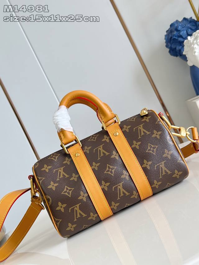 / 顶级原单 独家实拍 M14981 本款 Keepall 25 Cargo 手袋出自 Monogram Archive 系列,为 Monogram 帆布搭配做旧牛