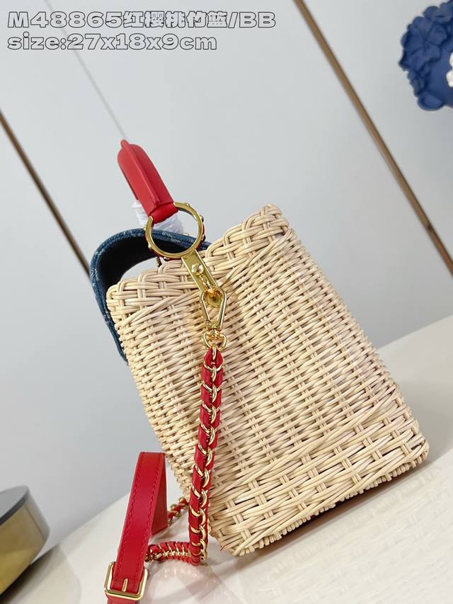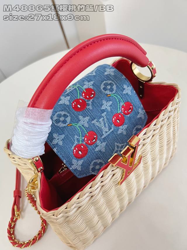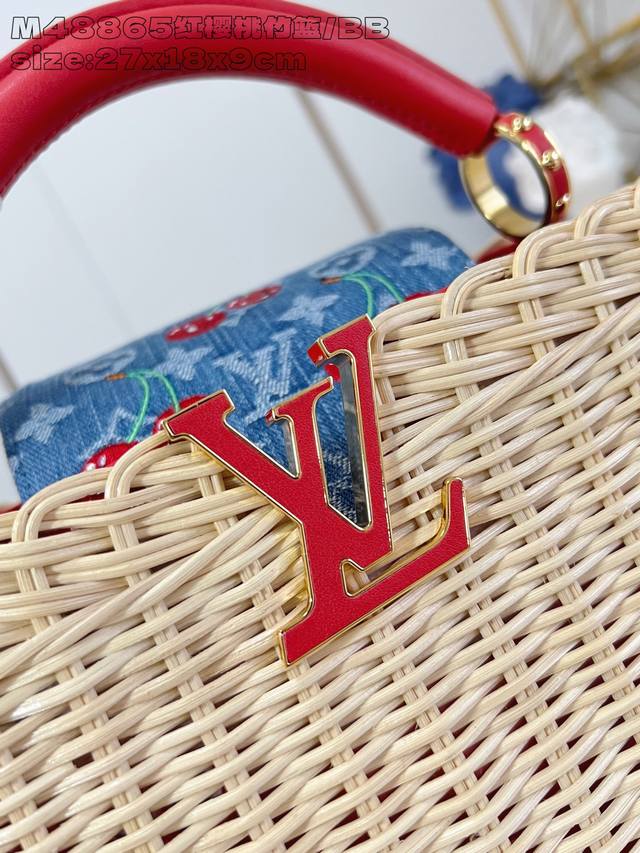 / 特级原厂 独家实拍 M48865红樱桃竹篮 小号 本款 Capucines Bb手袋邂逅路易威登 X 村上隆复刻系列的瞩目细节,以清新元素烘托潮流格调。藤条包身