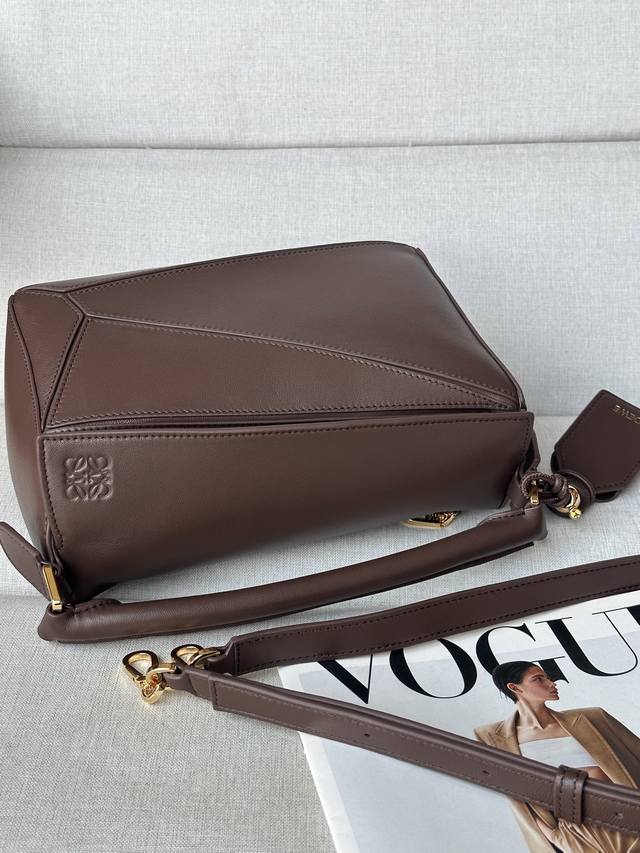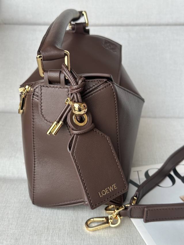 原厂皮 新品 3007 小号纳帕羊皮革 Featherlight Puzzle 手袋Featherlight Puzzle 以别具一格的几何线条勾勒长方体造型。柔软轻盈的纳帕皮革为手袋注入随性慵懒的风格。可肩背、斜挎或手提可拆卸可调节肩带,饰有旋转卡扣拉链开合,铰接式拉链头一个外部拉链后袋,一个内部插袋可拆卸 Loewe 烫金或烫银标签,饰有隐秘口袋和气球骰子长方形金属脚钉纳帕羊皮革衬里Anagram 压纹、饰牌内部镌刻 Loewe尺寸:24*10.5*16.5Cm