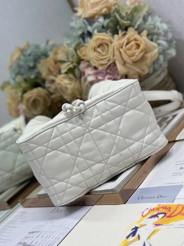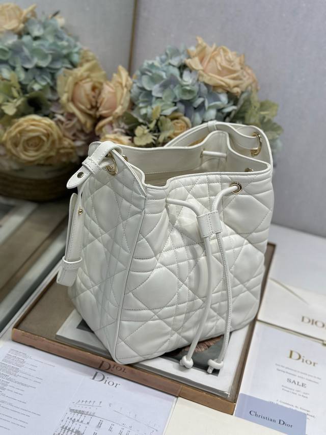 正品级 ,高版本中号 D-Motion 手袋 白色 带可扫描高版本163变码芯片!这款 D-Motion 手袋是二零二五冬季成衣系列新品,时尚实用的桶式设计,别具一格。采用白色羊皮革等材质精心制作,饰以藤格纹缉面线,柔软的版型搭配抽绳开合。带有宽敞的内部隔层、拉链口袋及两个侧面插袋,可收纳各种日常用品。中号款式,饰以浅金色饰面金属 D.I.O.R. 吊饰更显精致,搭配滑动设计的可调节肩带,可肩背或斜挎。D.I.O.R. 吊饰抽绳开合可调节皮革肩带2 个内部插袋内部拉链口袋型号:2852尺寸:23 X 24