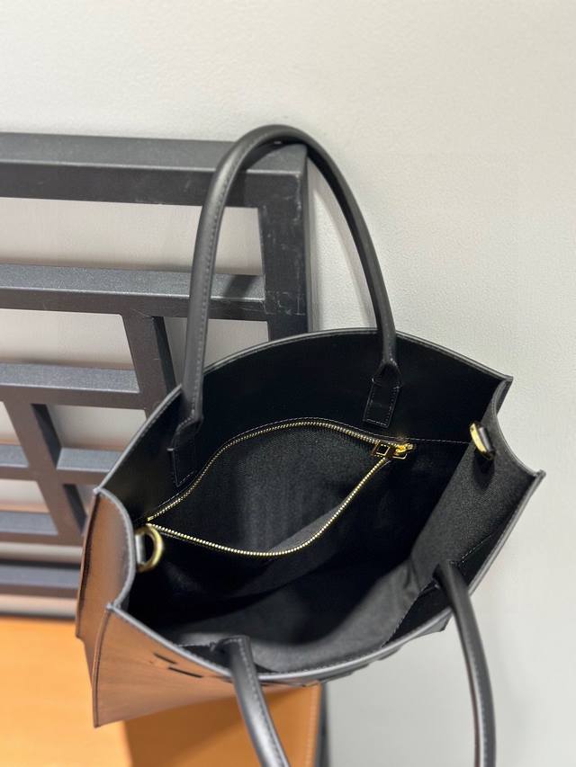 原厂皮 Lewe 牛皮革 Standard A4 Tote 手袋 黑色大号 Loewe Standard Tote 是一款实用的手袋,底部采用信封结构,可通过顶部提手或可拆卸肩带携带。 这个版本采用油亮牛皮革制成,正面饰有 Loewe 徽标压纹。手提、肩背或斜挎可拆卸可调节肩带拉链内袋和插袋可以使用肩带和个性化挂饰进行定制人字纹棉帆布衬里型号:A463 850尺寸:28×7.5×36Cm