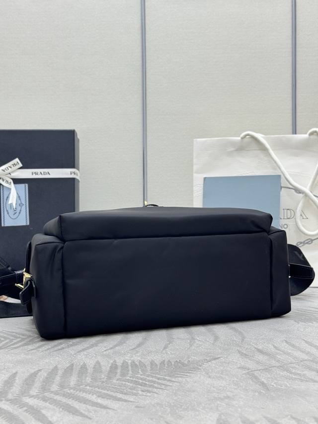 新款邮差包1Bd391大号这款手袋完美融合精致与功能性,采用再生尼龙材质,轮廓柔和,配有多个口袋。轻盈实用的设计结合运动与百搭元素,饰有涂珐琅三角形金属徽标,搭配皮革细节。配有2条肩带可拆卸,容量大,太完美,又是一款永久不过时爆款,大号男女共用,赶紧入手吧尺寸:长37.5X高19X底12Cm