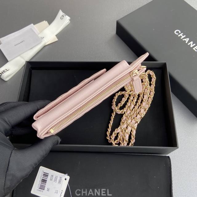 / 原厂皮360小香进口意大利颗粒牛皮货号:A 颜色:淺粉細球纹金扣尺寸:W18.5×H9×D3Cm