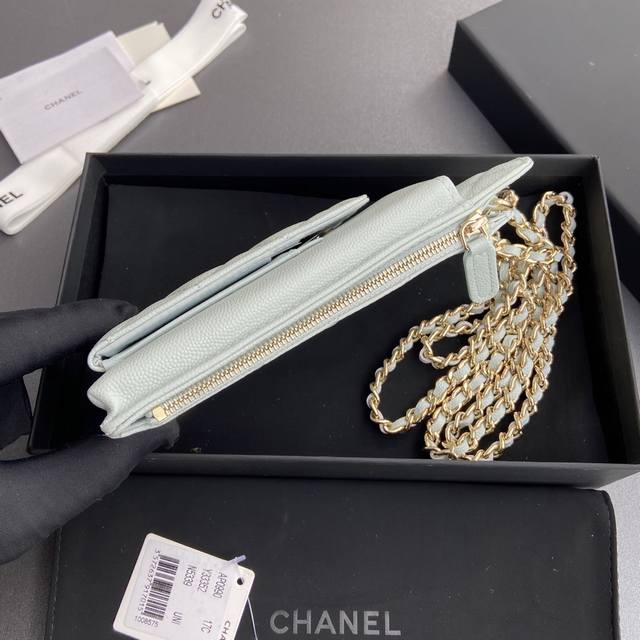 原厂皮490小香进口意大利颗粒牛皮货号:A 颜色:淺藍細球纹金扣尺寸:W18.5×H9×D3Cm