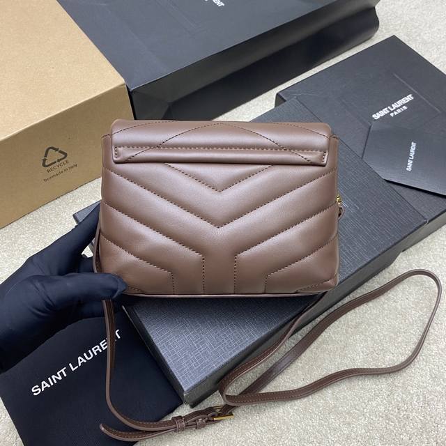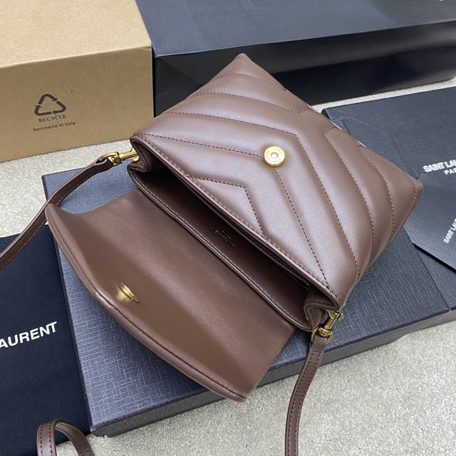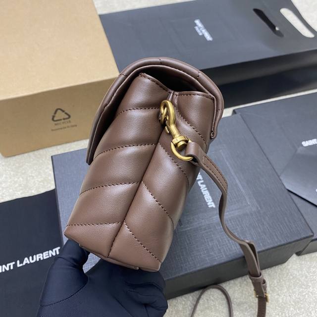 咖啡平纹 古金顶级原单、精品专供 新色Loulou迷你号斜挎包,整包采用柔软的意大利原厂胎牛皮制作,搭配经典的Y家斜条纹绗缝工艺,拥有柔和质地的前翻盖袋,肩带可