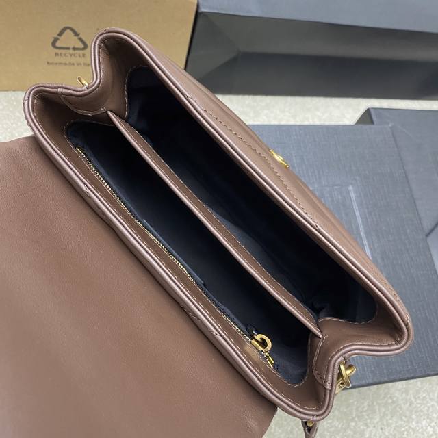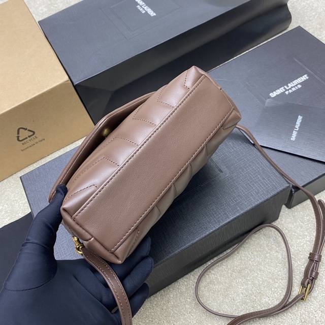 / 咖啡平纹 古金顶级原单、精品专供 新色Loulou迷你号斜挎包,整包采用柔软的意大利原厂胎牛皮制作,搭配经典的Y家斜条纹绗缝工艺,拥有柔和质地的前翻盖袋,肩带可