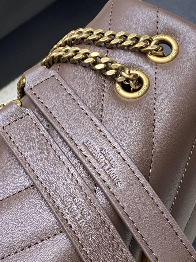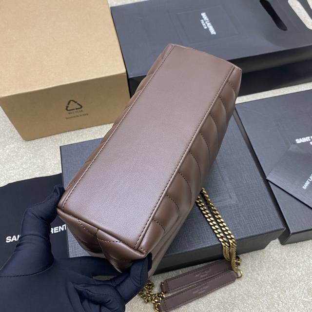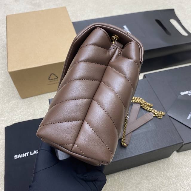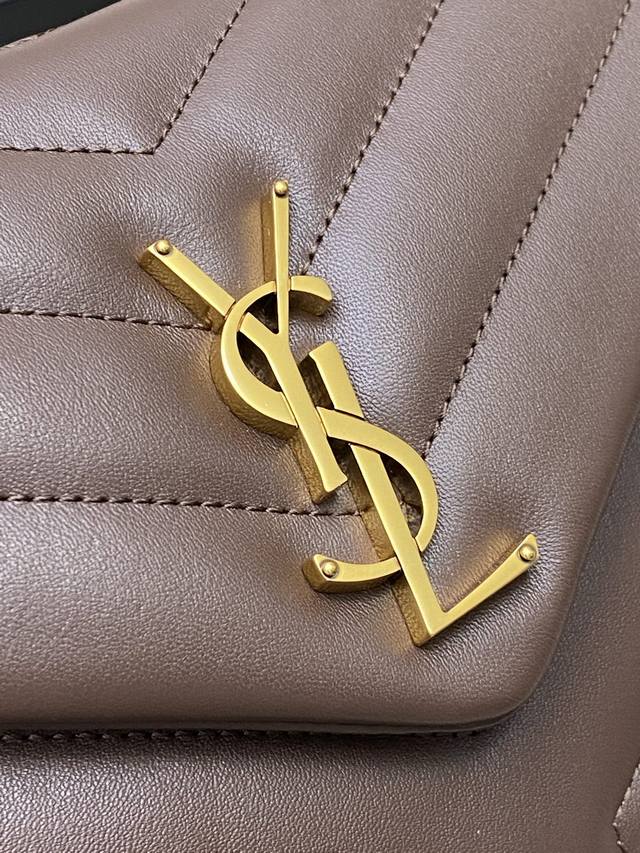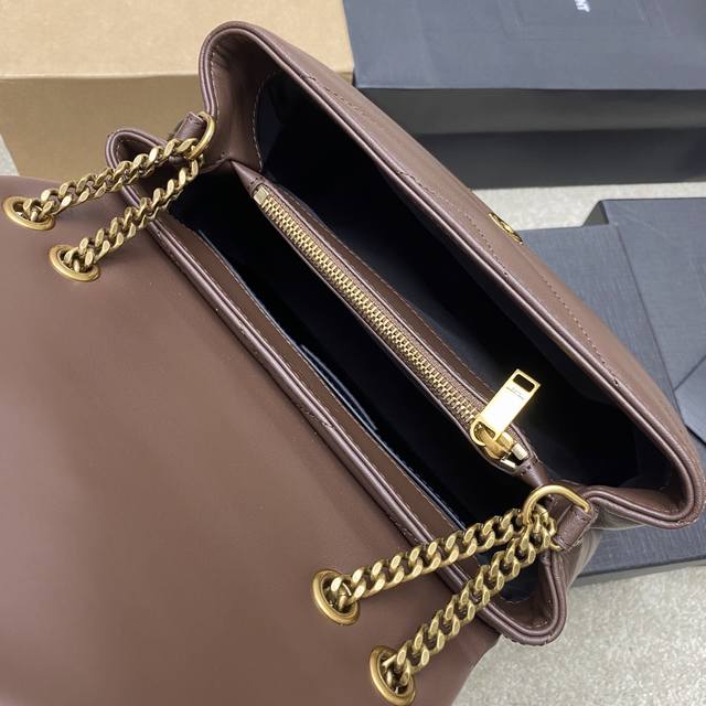 咖啡平纹 古金顶级原单、精品专供新色热销款Ysl Loulou 中号长形信封挎包,经典柔和造型前翻盖包 带金属联结Ysl标志 金属和真皮链条肩带以及Y字形拼接S