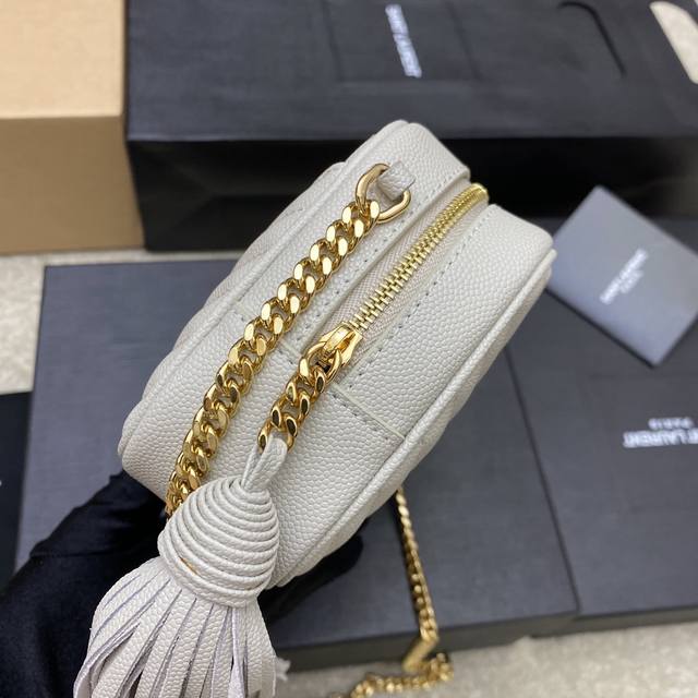 白球纹 金原厂皮、精品专供 顶级进口牛皮相机包,Zp开模打版,做到一模一样!非常精致!搭配时尚流苏挂饰!里外全皮,包内有卡槽位!非常实用大气! 型号:585040 505731尺寸:18×10×5Cm