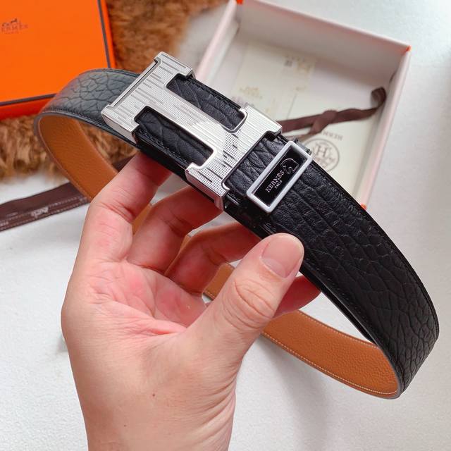 爱马仕经典款,高端锻造纯钢扣,进口大象纹搭配荔枝纹牛皮,两面可用,搭配精品五金,做工精致,实物拍摄,高端奢华,3.8Cm宽度