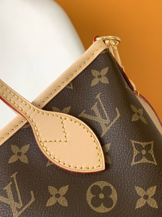 / M46705 皮肩带 顶级原单本款 Neverfull Bb手袋结合了经典设计与标志性细节。由 Damier Ebene 帆布制成,采用多彩织物内衬,并搭配牛皮