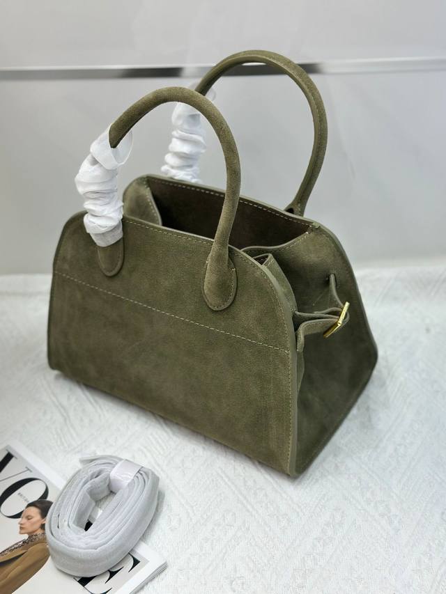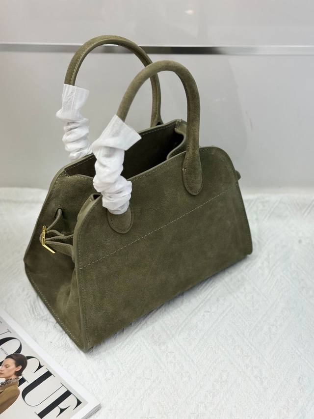 特价 The Row Margaux 10磨砂 绿色采用优质磨砂牛皮,质感细腻,触手生温,独特的纹理彰显着低调的奢华。极简风,线条简洁流畅,没有过多繁杂的装饰。可调节的侧边扣带设计,不仅增添了设计感,还能根据需求调整包身形态。配可拆卸肩带,手提优雅,肩背随性。款号:3188磨砂尺寸:长26高20宽16颜色:黑色 咖啡色 孔雀蓝 绿色 深灰 酒红 焦糖 棕色