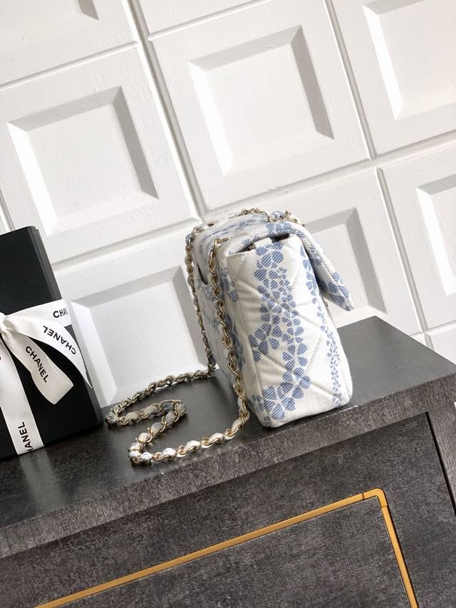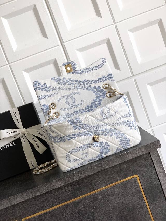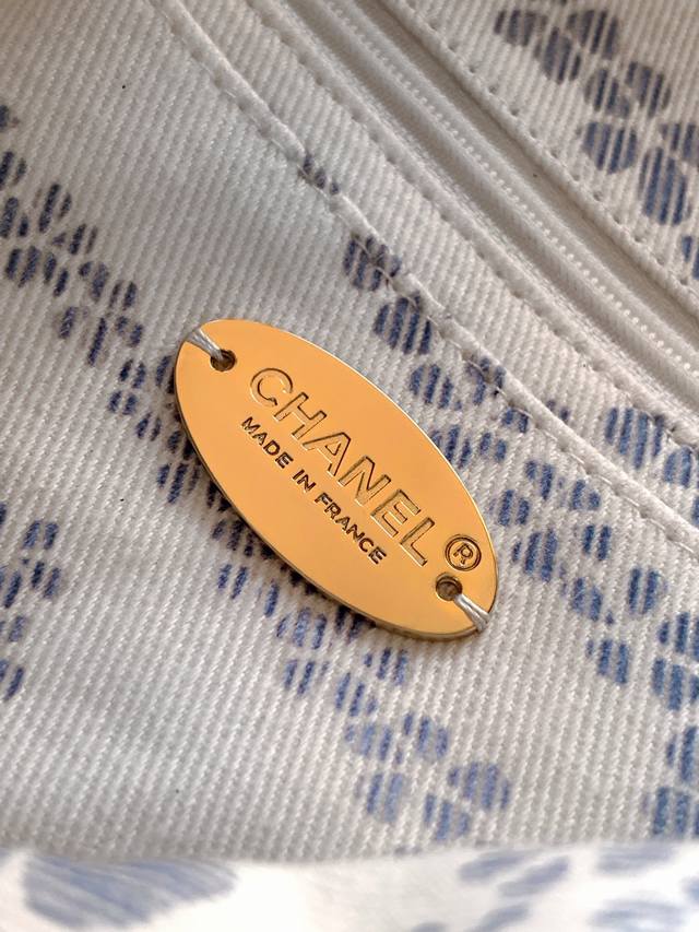 蓝白色 Ohanel沙滩Cf口盖!包包非常有设计感,布料非常耐磨,Cf版型青花瓷的感觉,搭配浅金扣显得清新脱俗、小香沙滩味来袭 25M Coco Beach布面