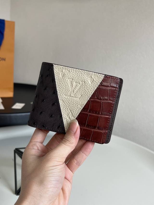 出厂价P 芯片版顶级原单M84689灰拼色 全皮西装夹钱包系列 Multiple 钱夹 這款Multiple錢包是路易威登經典款式之一,造型時尚雅緻,功能實用,適合日常使用。錢包設計更見昇華,細緻揉合三款極致奢華的皮革,包括短吻鱷魚皮、駝鳥皮及路易威登標誌性的Taurillon Monogram小牛皮,展現典雅精緻格調,完美頌讚品牌雋永的精湛匠藝。11.5 X 9 X 1.5 厘米