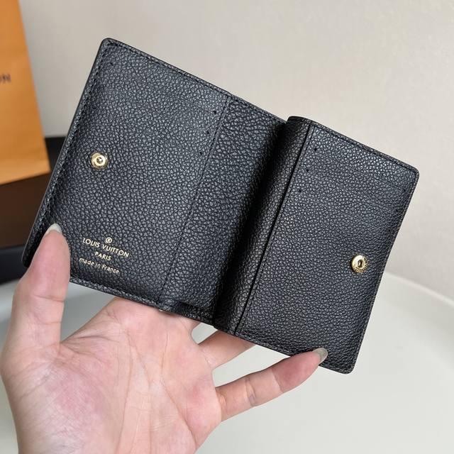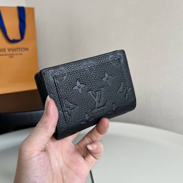 出厂价P 芯片版 M80152 黑色 這款CléA錢包以Monogram Empreinte柔軟粒面牛皮製成,綴以路易威登標誌性的Monogram壓花圖案,設計時尚,精緻小巧卻容量寬敞,綴有一個外貼袋、拉鏈零錢袋、紙幣隔層及六個信用卡夾層。細節12 X 9 X 3.5 厘米 長度 X 高度 X 闊度 斑鳩米色柔軟粒面壓花牛皮牛皮襯裡金色金屬件按扣開合隔層可放紙幣風琴式拉鏈零錢袋外貼袋卡片內夾層6個信用卡夾層