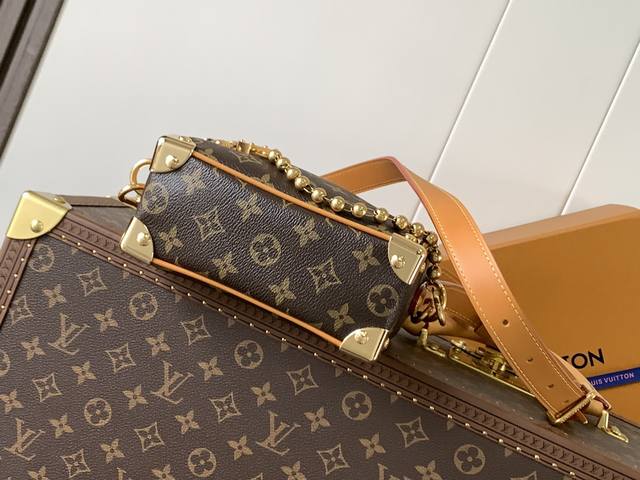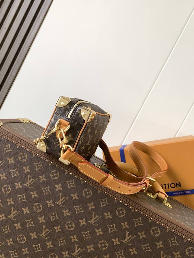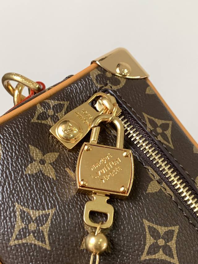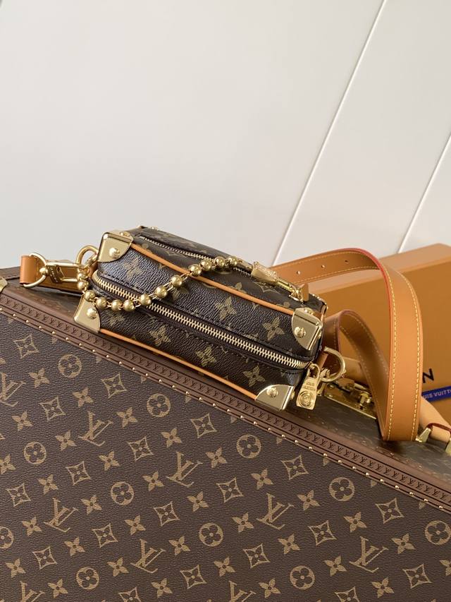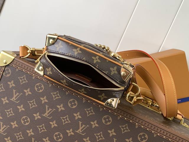 / 出厂价P M14729 顶级原单 变码芯片163C 本款 Mini Soft Trunk 手袋糅合 Monogram 涂层帆布和牛皮革饰边,再搭配莹泽珠链。崭新