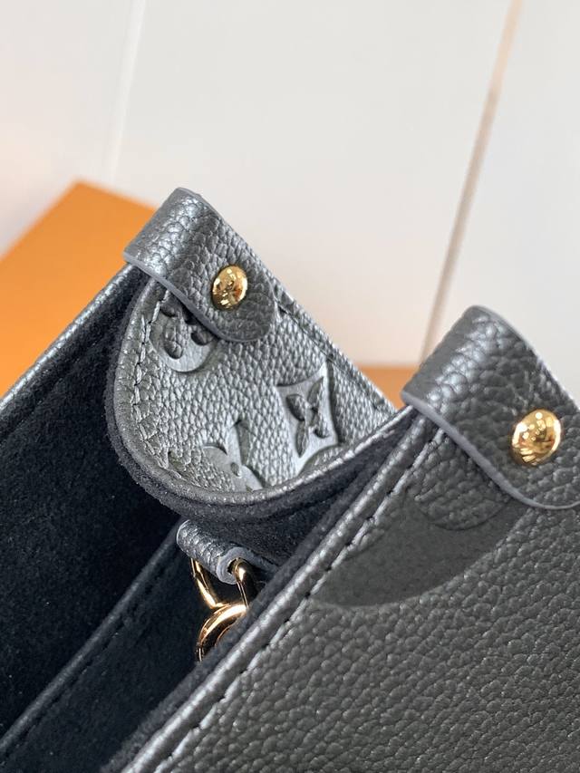 出厂价P 顶级原单,变码芯片M12886枪灰色M45653头层牛皮顶级原单 Onthego 小号手袋 本款 Onthego Ys小号手袋出自 Lv Ski 系列,以闪耀之姿点亮昼夜造型。Monogram Empreinte 皮革搭配莹泽金属件,可轻松收纳随行所需,可拆卸肩带实现多种背携方式。尺寸:19 X 11.5 X 25 厘米