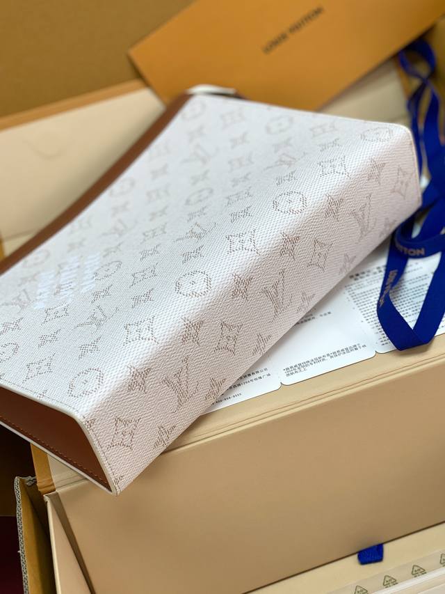 / 出厂价P 升级版本M61692 白条纹!芯片版!Monogram Heritage 涂层帆布包裹印花牛皮内胆!主题焕新 Pochette Voyage 手袋设计