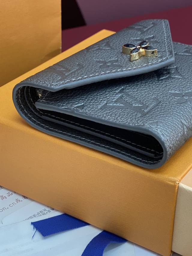 出厂价P M12746 珠光灰! 采用进口头层牛皮制作 Victorine 錢!這款Lv Ski系列的Victorine錢包以優雅的Azur Frost色及 閃爍 效果彰顯出眾設計。錢包以標誌性Monogram Empreinte皮革製成,並配以綴有閃爍水晶的Monogram花卉圖案按式錢包扣,而寬敞的內部空間更可存放名片、紙幣及零錢,格外實用。12 X 9.5 X 2.5 厘米 長度 X 高度 X 闊度 。