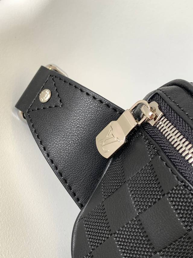 / 顶级原单 N40298压格 Campus 腰包 以 Damier Graphite 涂层帆布塑造紧凑构型,黑格黑皮男士腰包胸包 主隔层之外的拉链后袋亦可容纳手机