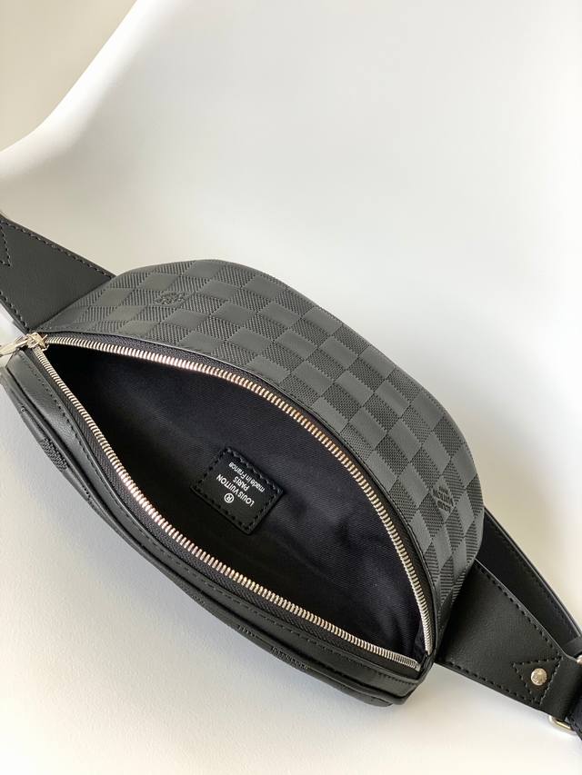 顶级原单 N40298压格 Campus 腰包 以 Damier Graphite 涂层帆布塑造紧凑构型,黑格黑皮男士腰包胸包 主隔层之外的拉链后袋亦可容纳手机