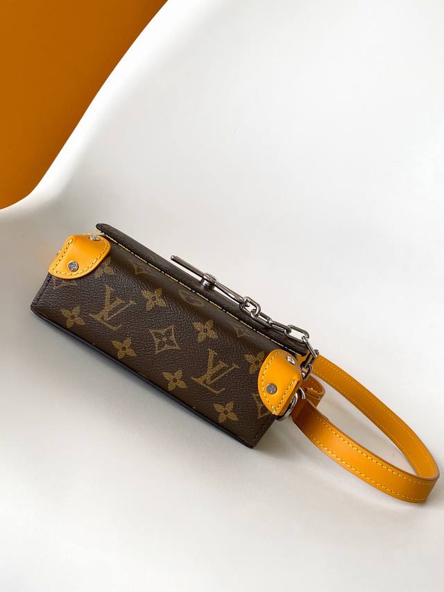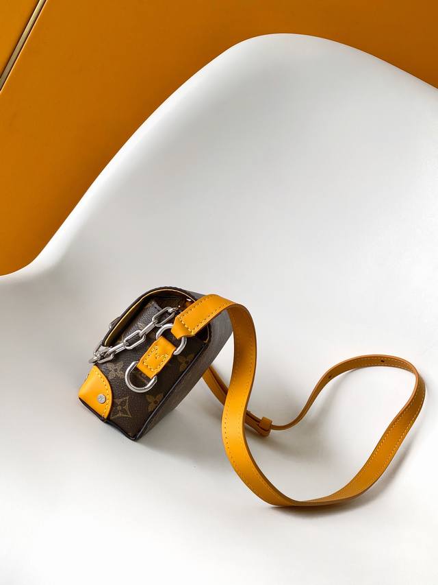 M12811黄色顶级原单 动态芯片 本款 Steamer 迷你手袋取材 Monogram Eclipse 帆布,向路易威登 Steamer 硬箱汲取链条和饰针元
