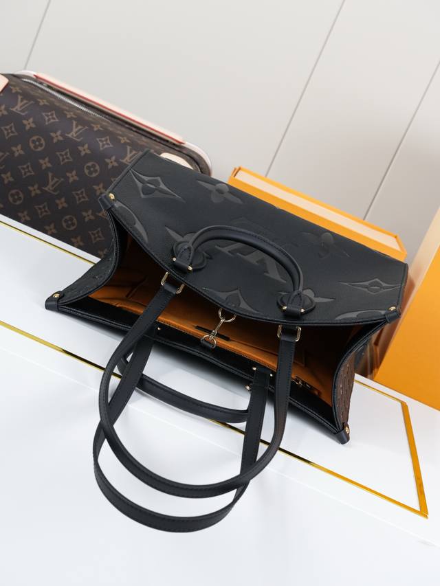 动态163C01芯片 M45595黑压35 顶级原单 独家背景实拍 春季,Onthego 中号 Tote 包选取压印 Giant Monogram 图案的 Mo