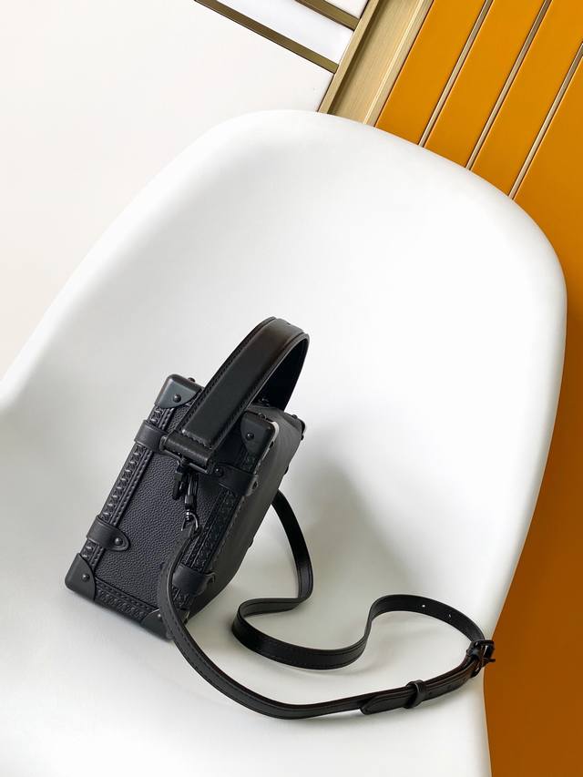 动态变码 头层牛皮 M24309全黑M25160黑色 M25072灰色 M23817小黑色 M23915米白 M25067蓝色 M23818棕色 顶级原单 创意总监 Nicolas GhesquièRe 以本款雅致 Side Trunk 中号手袋致意品牌传统硬箱。粒面牛皮革包身点缀光滑牛皮革饰边、S-Lock 锁扣与金属质感加固包角。手柄与可调节肩带均可拆卸,方便手持、肩背或斜挎。21.0 X 14.0 X 6.0 厘米 长 X 高 X 宽