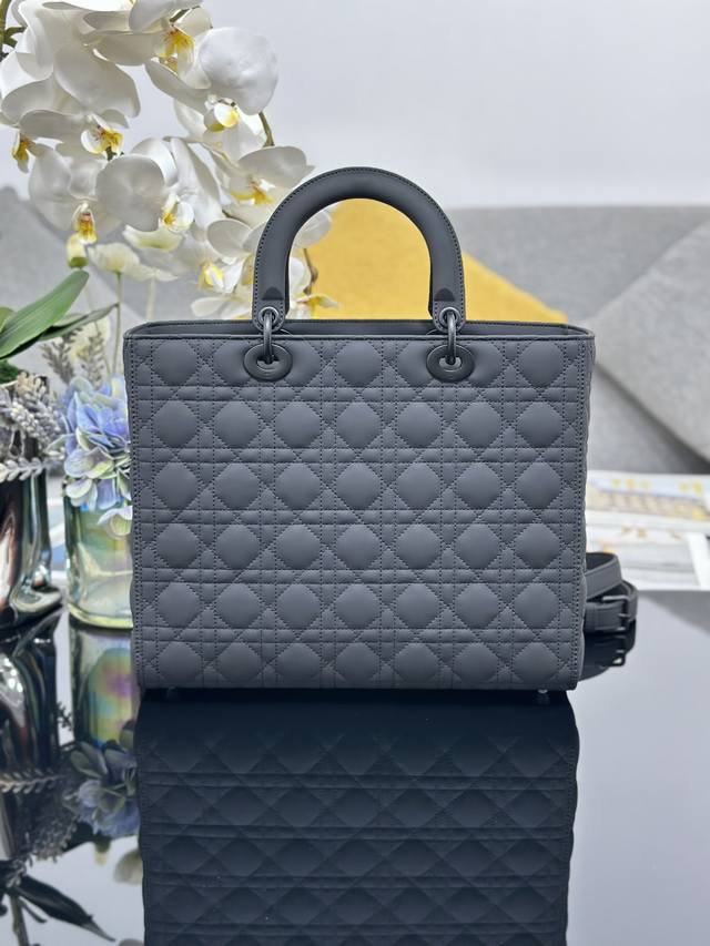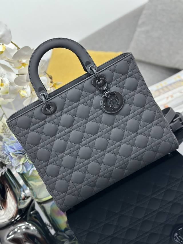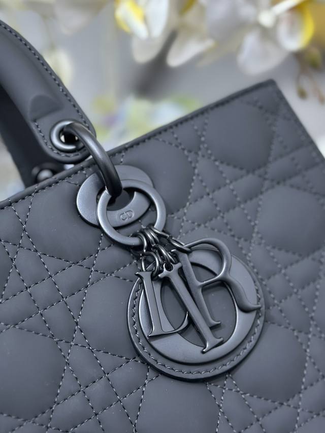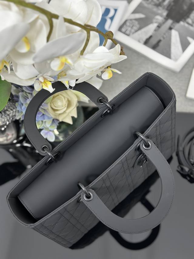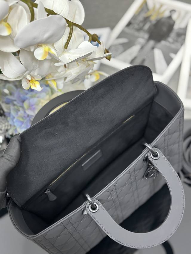 原厂 配全套包装 Lady Dior 七格磨砂藤格纹牛皮革翻盖式手袋,搭配肩背带。Ultra Matte饰面金属配饰,可调节细肩背带,可手提亦可肩背或斜挎,尺寸