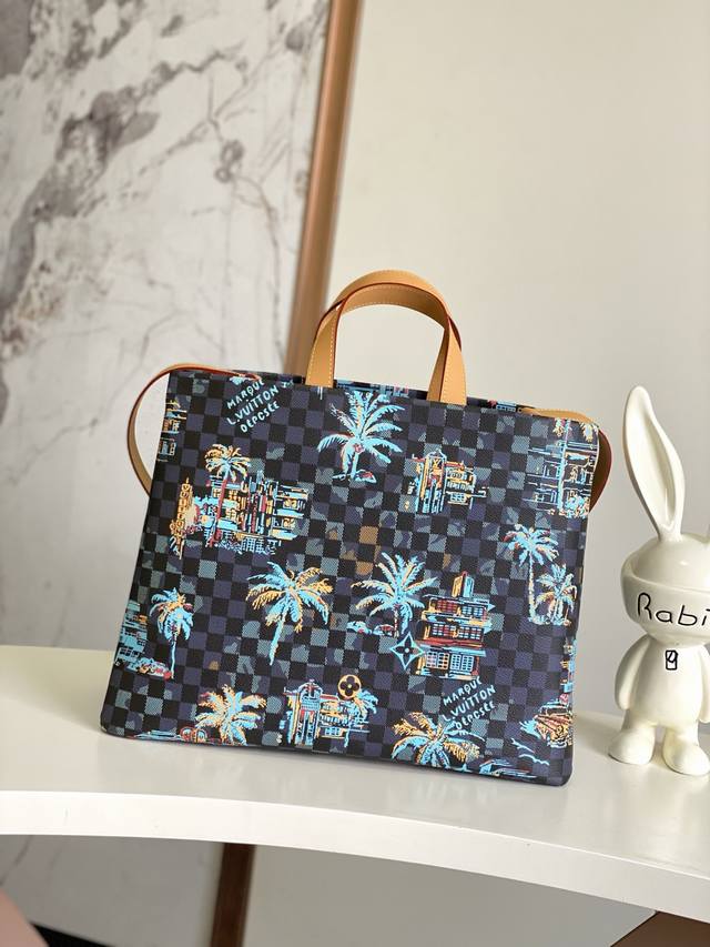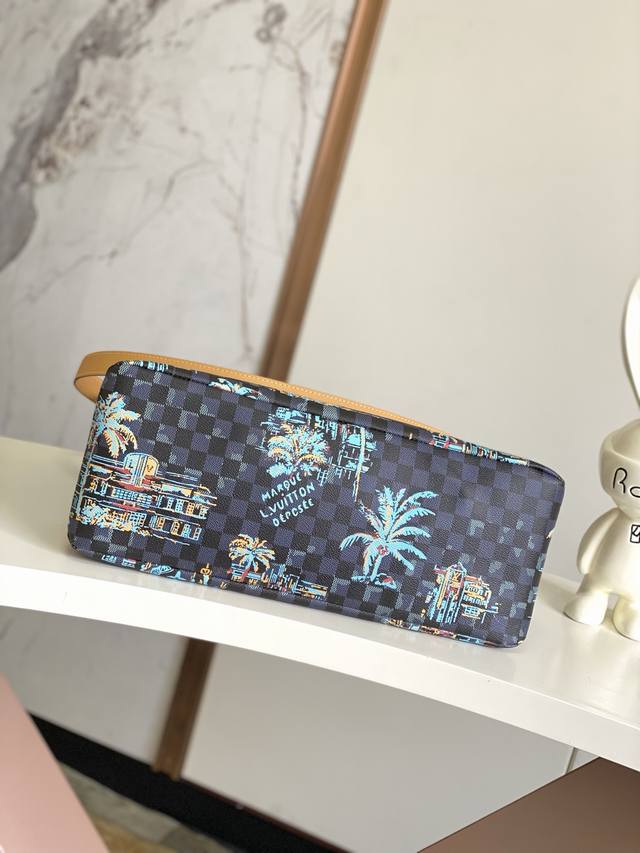 N00218椰子树 M13928全皮顶级原单 动态163 Shopper Tote 手袋的设计灵感源自路易威登经典购物袋,以同样利落的线条和对比鲜明的路易威登字母标识为特点。此款手袋选用 Lvers Damier Ebene 涂层帆布,搭配 Pharrell Williams 以多彩手法重新演绎的 Damier 图案 这一灵感源自 1888 年 Georges Vuitton 创造的经典设计 。两条顶部手柄与可拆卸肩带提供了灵活的携带方式,兼具实用性与独特魅力。40.0 X 32.0 X 16.0 厘米