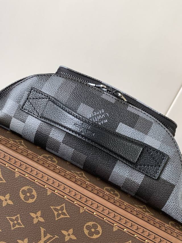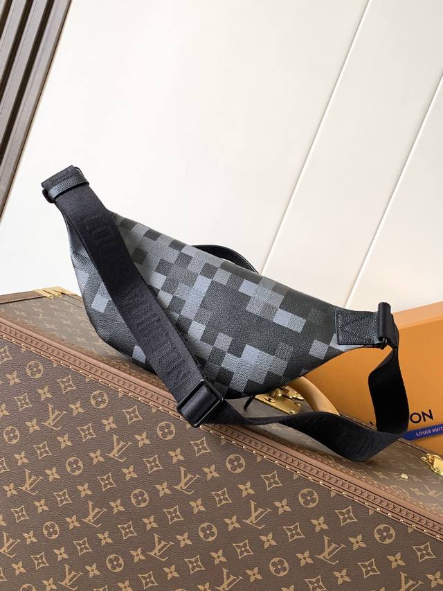 M14920顶级原单 变码芯片163C 迷彩男包胸包腰包 当季新款 Rush 腰包 本款 Rush 腰包以 Damoflage Black 帆布呈现摩登潮流构型,并将像素化 Damier 图案铺陈其上,营造迷彩效果。可调节肩带实现舒适腰挎、肩背或斜挎造型。15 X 8 X 30 厘米。