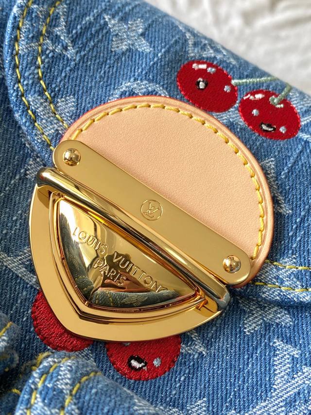 M13679蓝 樱桃刺绣顶级原单加强版半钢五金163C01本款 Venice 双肩包出自路易威登 X 村上隆复刻系列,为 Monogram 丹宁布融入个性樱桃刺绣,以妙趣笔触演绎日本艺术家笔下的斑斓意趣。考究皮革勾勒纤细肩带,莹亮插扣点亮翻盖与外袋。24.0 X 26.0 X 7.0 厘米 长 X 高 X 宽