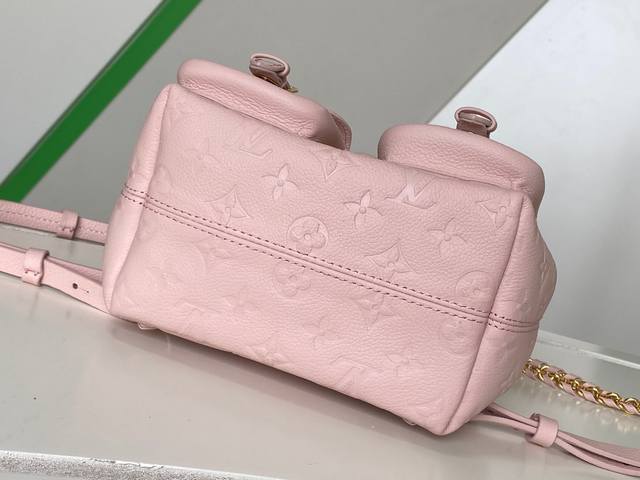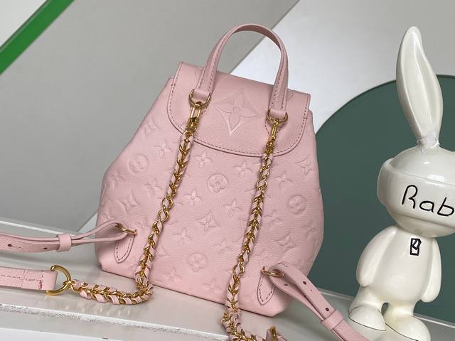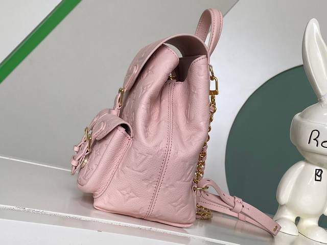 海原外单 独实家拍 动态芯片 M47074粉色本款 M47106奶白 M47072黑色 Backup 双肩包取材 Monogram Empreinte 牛皮革,低调铺陈 Monogram 压纹。可拆卸并调节的肩带实现单肩和双肩背携,顶部手柄和编织链条提供手提或斜挎选择。20.0 X 22.0 X 14.0 厘米 长 X 高 X 宽