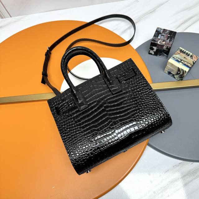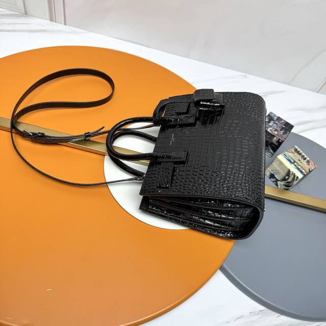 Sac De Jour P Y家最经典款风琴鳄鱼纹Mini Size黑色22Cm_配有长肩带!一个发票隔层_!包内一个大空间的设计理念_解除隔层束缚!让你什么都