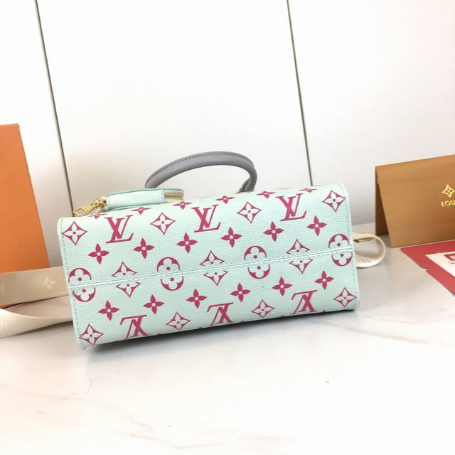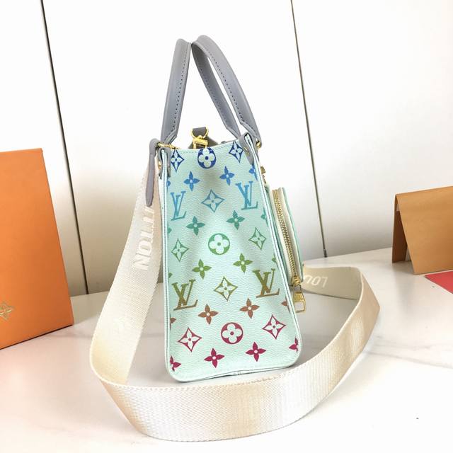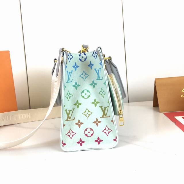 M46373彩虹渐变系列,独家实拍!本款 Onthego 小号手袋拼合 Monogram 和 Monogram Reverse 帆布,Monogram Gian