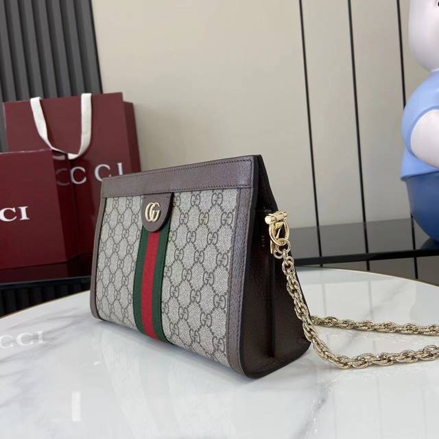 配全套原厂专柜包装 新品 Ophidia系列亮眼呈献新颖廓形与功能,以标志性米色和棕色配色匠心演绎,缔就质地柔软的创新包袋单品。米色和深棕色Gg帆布棕色皮革滚边浅金色调配件绿色棉质衬里Double G织带内部:两个隔层和一个开口袋链式肩带 43厘米高 隐形磁扣开合型号:837428。尺寸:26厘米 宽 X 17.5厘米 高 X 8厘米 深 重量:约0.6千克颜色:啡棕 Pvc。意大利创作