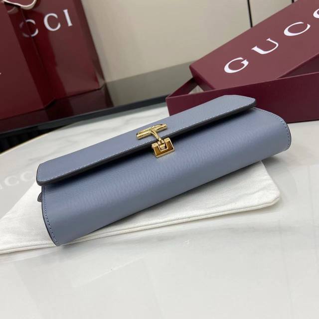/ 配全套原厂专柜包装 新品 这款Gucci Softbit系列肩背包匠心融蕴大号半马衔扣造型品牌经典马术风格配件。浅蓝色粒面牛皮革浅金色调配件深棕色超细纤维衬里半