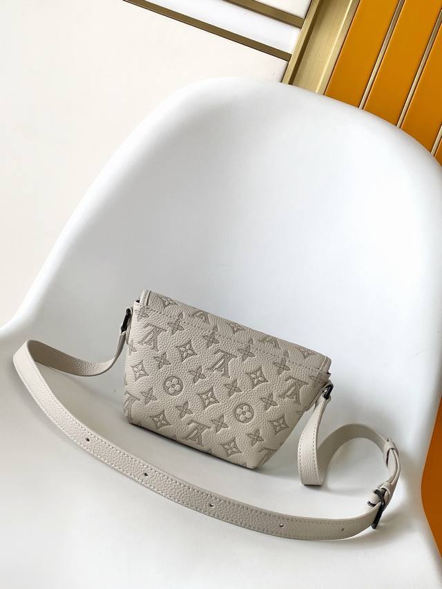 M14794本款 原单灰色对版色Pulse 迷你手袋为 Monogram Shadow 压纹牛皮革浸染摩登新色,以柔软质感升级考究构型和舒适背携体验。金属件与翻