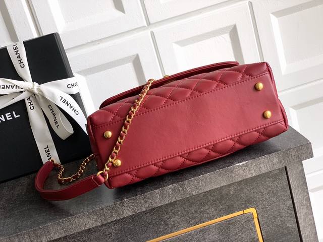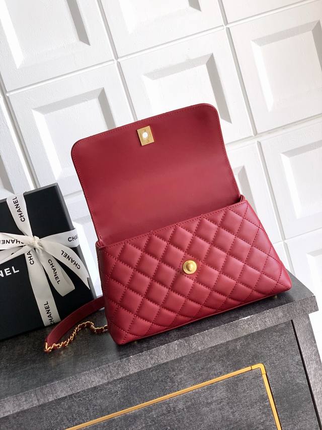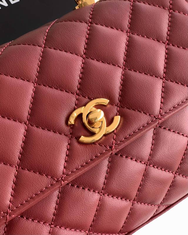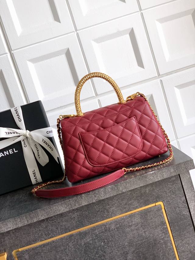 酒红色 23Cm Ohanel 25A 金色钻石镂空手挽!经典又时尚系列 、爆款来袭Cocohandle 经典之作 !采用了胎牛皮 !纯铜金属带钻手柄设计金光闪