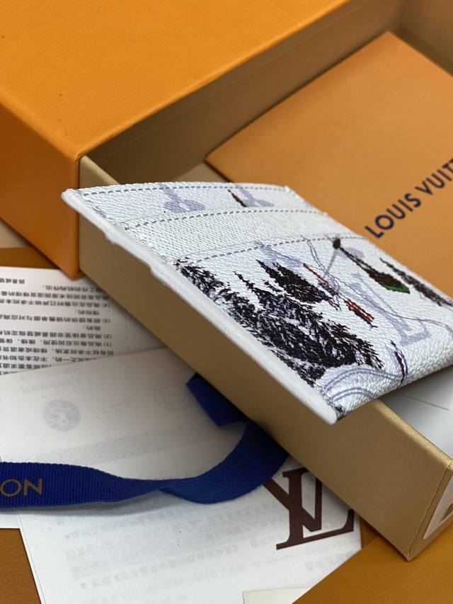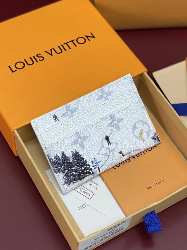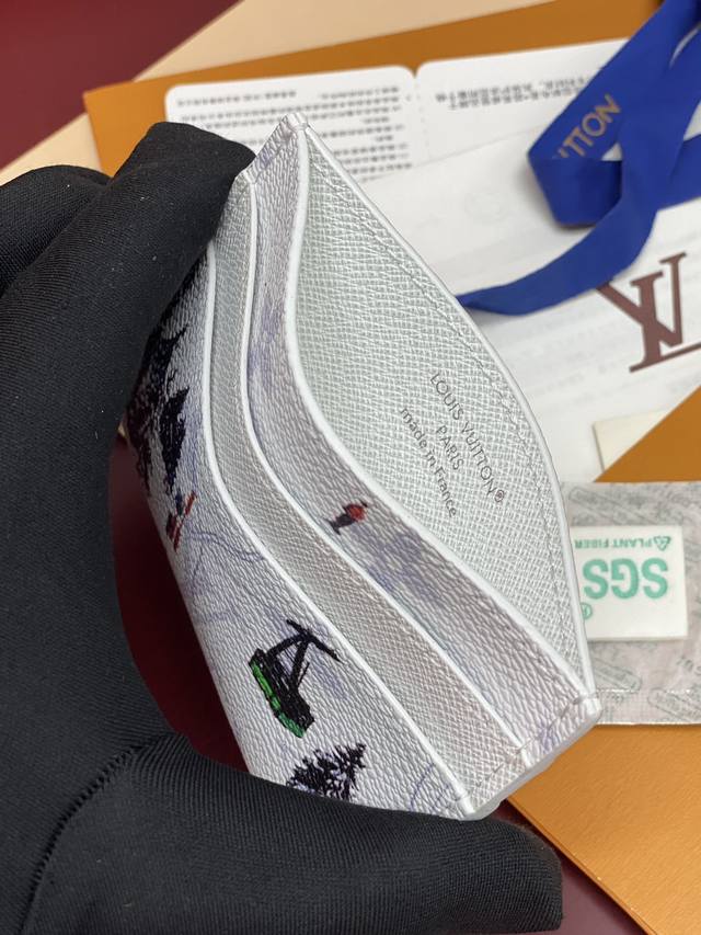 / 出厂价P M14862 卡片夹!滑雪白色!Double 卡夹、本款 Double 卡夹出自父亲节系列,为 Colored Monogram 帆布融入袖珍运动场景