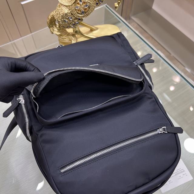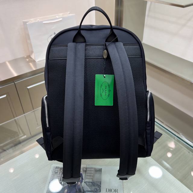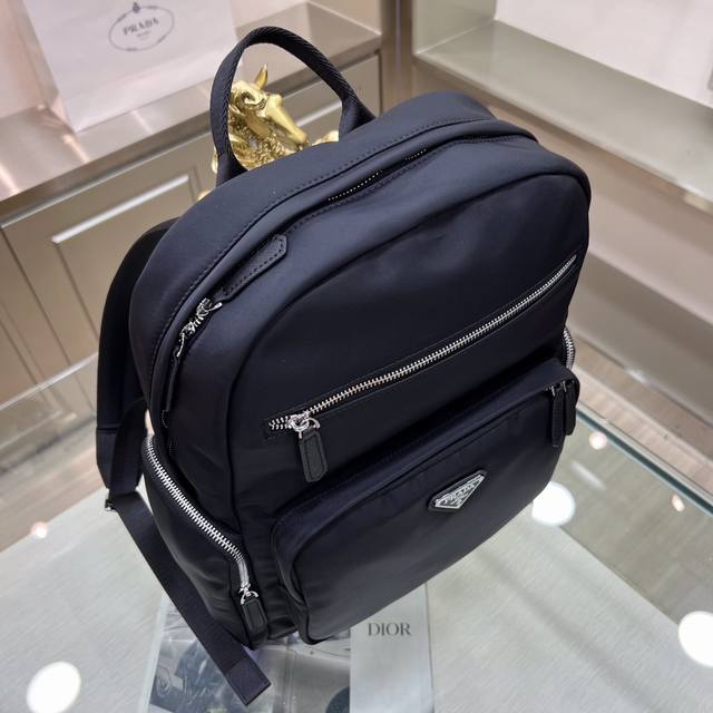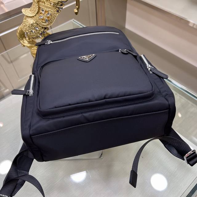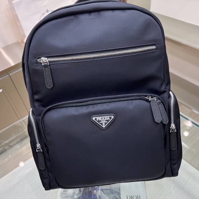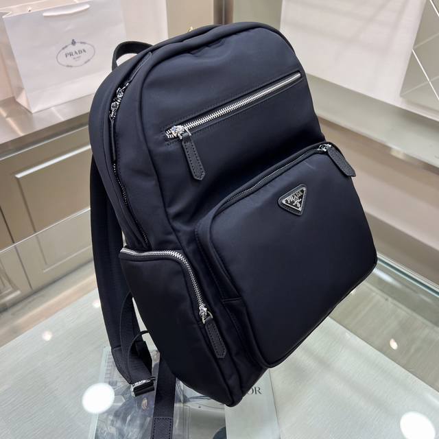 Prada 普拉达Pa1609 布配皮双肩包。进口防水布配头层牛皮,隔层多,容量大,比较轻便,简单休闲,销量冠军。出门旅游必须带上它,帅气十足,而且此款受到许多男神的追棒尺寸:33-12-42