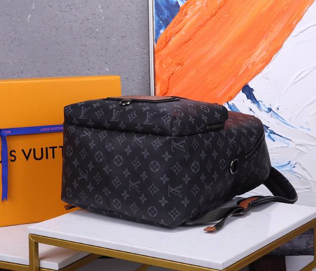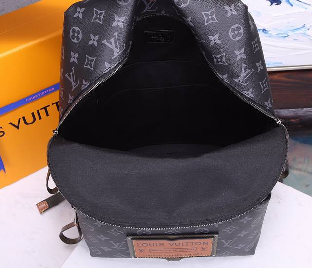 新品双肩背包 原单品质 M45218Discovery 双肩包 Discovery 双肩包属于 Gaston Labels 限量版系列,由 Monogram Eclipse 帆布制成, 饰有压纹皮革贴饰。借鉴品牌创始人之孙 Gaston-Louis Vuitton 收藏的复古行李标签设计,在适应积极的生活方式的同时,为此摩登包袋赋予传统质感。尺寸: 37.0 X 40.0 X 20.0 Cm 。
