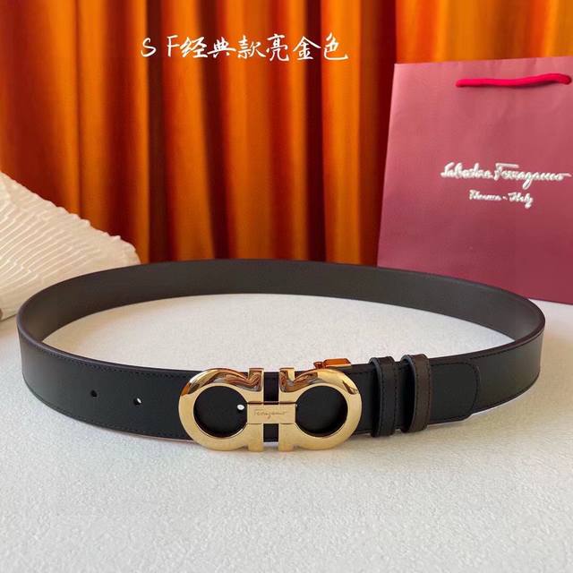 / 菲拉格慕 原单双面进口小牛皮带身.黑色与咖啡色一体,正反两面可用,搭配原单精品钢扣。原产皮料定制,专柜宽度3.5Cm. 温馨提示:长度100-125Cm 长度也
