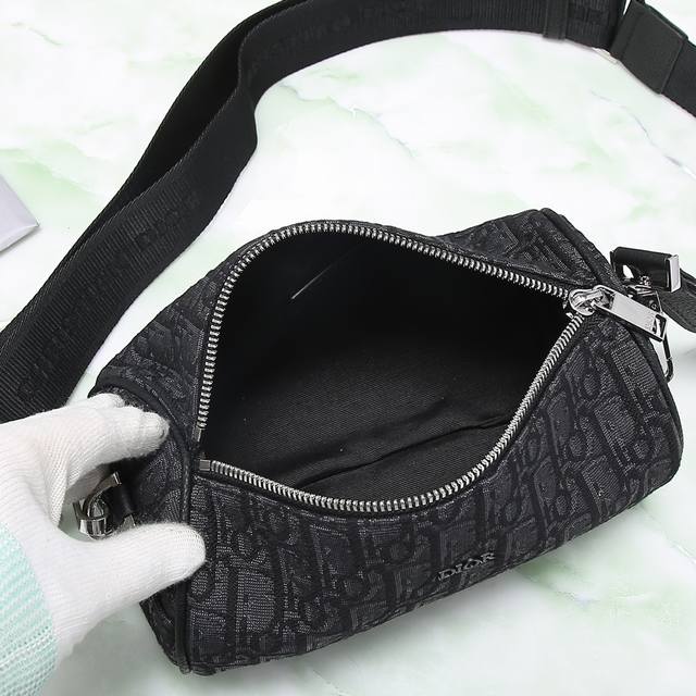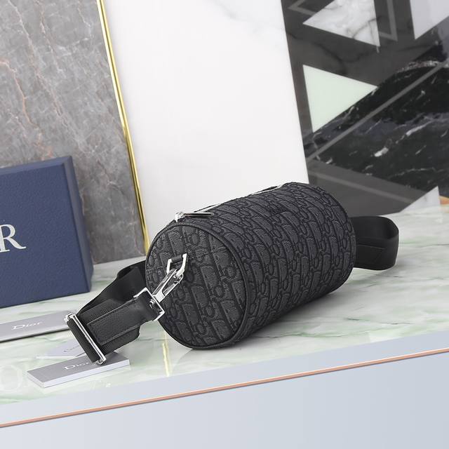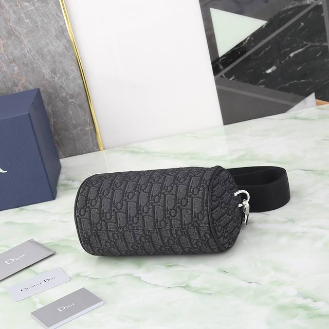 迪奥 Roller Dior Oblique男士肩背斜挎包 圆筒包 配专柜正品盒子 型号:1Ropo061 黑布提花 米色和黑色 Oblique 印花外部饰有橡