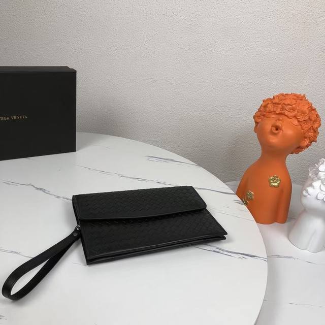 / 配盒子 Bv此款编织手包进口打蜡小牛皮制作,顶级做工造型纤薄轻盈,内部经过精心设计,袋口平行拉链,可折手拎带型号:8867-6#,颜色:黑色,尺寸26 18 3
