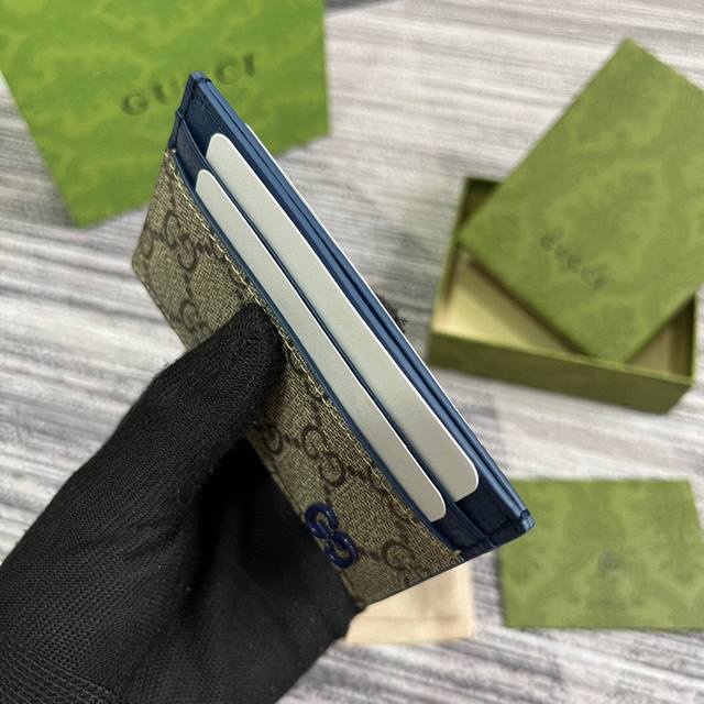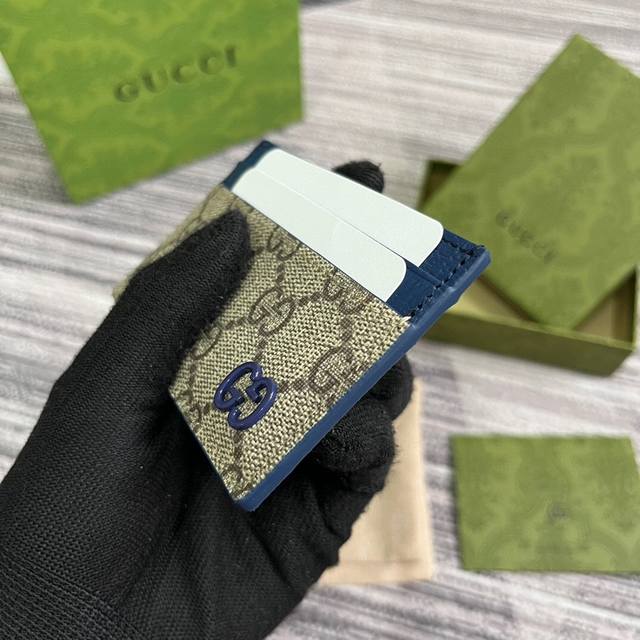 顶配版 饰Gg细节卡片夹。这款卡片夹采用米色和乌木色Gg Supreme帆布精制而成,品牌典藏细节尽展高雅韵致。采用蓝色小巧Gg配件细节,为整体设计添注一抹亮色。这件单品设有四个卡片隔层,令整个造型魅力更显。米色和乌木色Gg Supreme帆布,蓝色皮革滚边,黄铜配件,配蓝色陶瓷效果饰面,云纹织物衬里,Gg细节,4个卡片隔层。型号:768248。尺寸:11 宽 X 7Cm 高 颜色:啡蓝