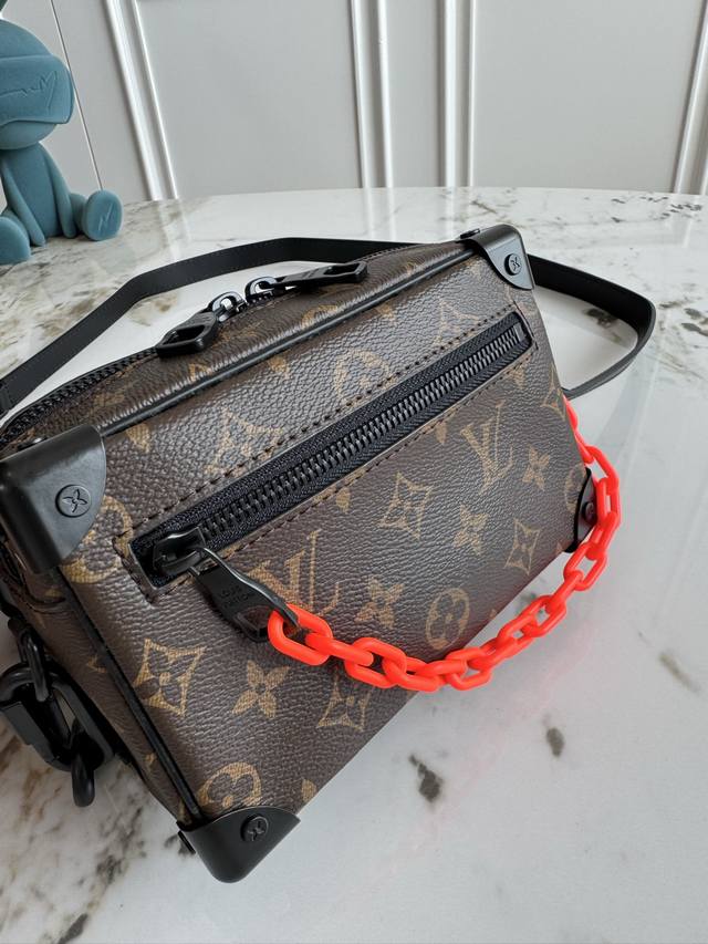 独家背景 动态芯片 顶级原单 M44480老花橙 M44735黑花 68906老花金 55702黑压花 Mini Soft Trunk 這款Mini Soft Trunk於 系列經重新演繹,選用全新奪目迷人的混合物料打造,以奢華的黑色鴕鳥皮配搭小牛皮襯裡。設計棱角分明,綴有取材自品牌行李箱製作傳統的加固包角,加上獨特的鏈帶細節,造型更顯時尚別緻。這款寬敞實用的都市風手袋成就精緻的主打款式。Size:18.5 X 13 X 8 厘米