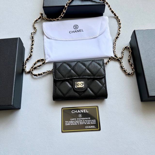 配盒 Size:15.5*11Cm 小香家 鱼子酱牛皮 羊皮中长夹 Chanel 钱包 里外全皮! 头层牛皮! 日常出门零钱和卡足够用的一款!...